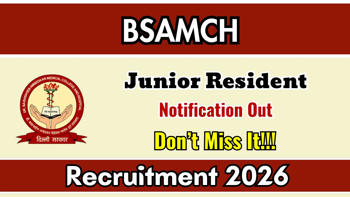 Dr Baba Saheb Ambedkar Hospital and Medical College (BSAMCH) has released an official notification for the recruitment of 20 Junior Resident Posts. Interested and eligible candidates can apply Online through the official BSAMCH website. The last date to submit the application form is 13-02-2026. In this article, you’ll find the BSAMCH Junior Resident Posts recruitment details, including eligibility criteria, age limit, salary structure, selection process, application steps, and direct links to the official notification and Online application form.