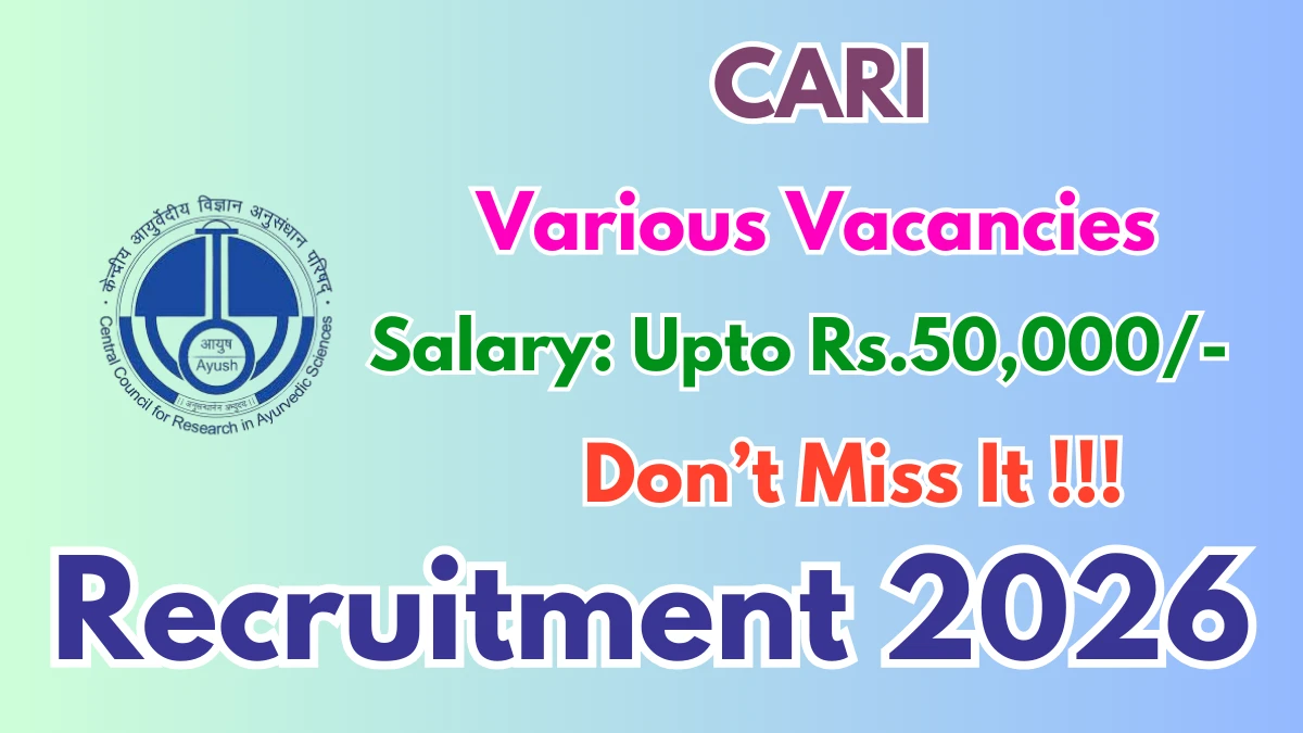 Central Ayurveda Research Institute (CARI) Recruitment 2026 for 13 posts of SRF, Consultant and More. Candidates with MBBS, BAMS, MS/MD Can attend the walkin. The Walk-in on 03-03-2026. For detailed information please visit CARI official website, https://ccras.nic.in.