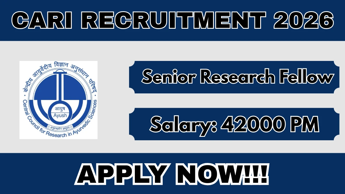 Central Ayurveda Research Institute (CARI) Recruitment 2026 for 03 posts of Senior Research Fellow. Candidates with BAMS Can attend the walkin. The Walk-in starts from 15-01-2026, and ends on 19-01-2026. For detailed information please visit CARI official website, cari.gov.in.