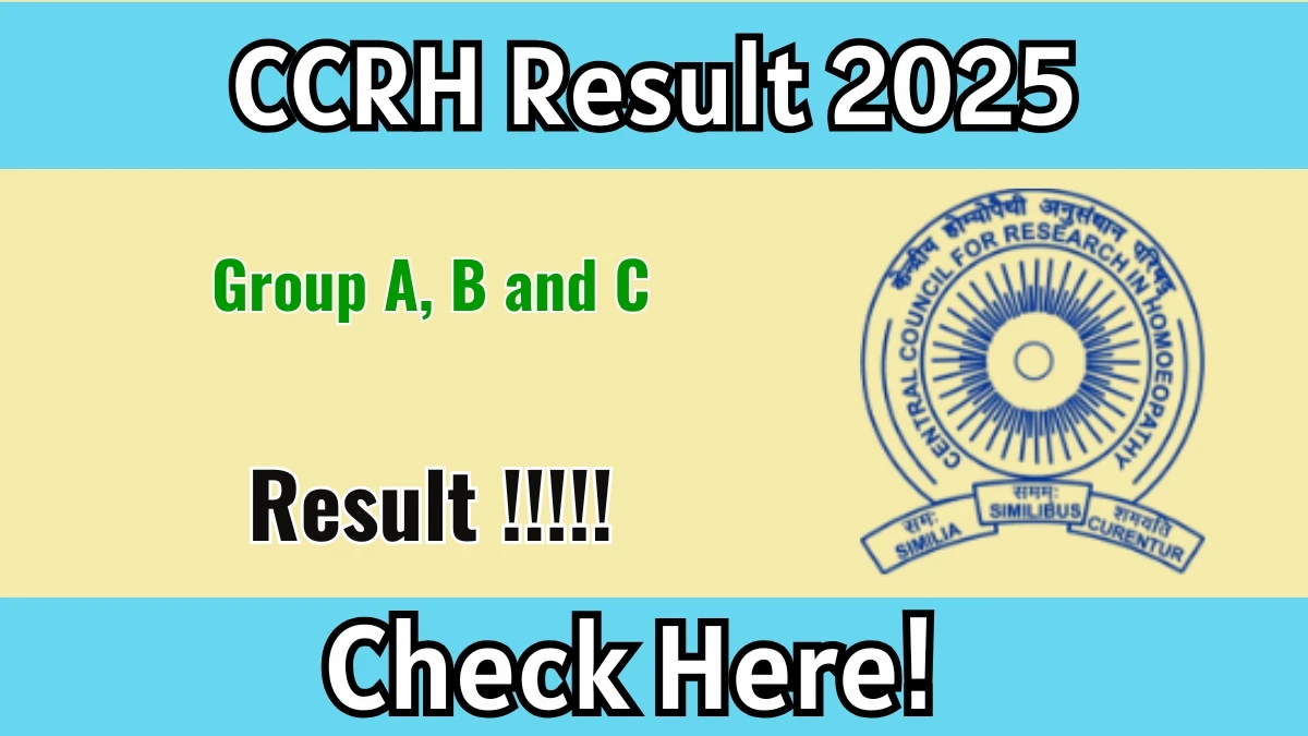 Result Status: Central Council for Research in Homoeopathy (CCRH) is expected to release CCRH Result 2025 soon at official portal ccrhindia.ayush.gov.in. Candidates who appeared in the examination can check their scorecard using Roll Number & DOB once released. Read below for expected result date, cut-off marks, and selection process details.