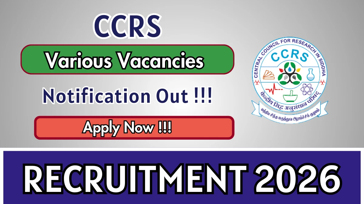 Central Council for Research in Siddha (CCRS) has released an official notification for the recruitment of 14 Research Officer, Laboratory Attendant And More Posts. Interested and eligible candidates can apply Offline through the official CCRS website. The last date to submit the application form is 31-03-2026. In this article, you’ll find the CCRS Research Officer, Laboratory Attendant And More Posts recruitment details, including eligibility criteria, age limit, salary structure, selection process, application steps, and direct links to the official notification and Offline application form.