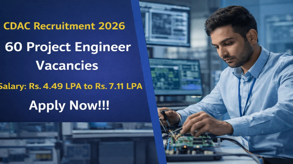 Centre for Development of Advanced Computing (CDAC) has released an official notification for the recruitment of 60 Project Engineer Posts. Interested and eligible candidates can apply Online through the official CDAC website. The last date to submit the application form is 31-01-2026. In this article, you’ll find the CDAC Project Engineer Posts recruitment details, including eligibility criteria, age limit, salary structure, selection process, application steps, and direct links to the official notification and Online application form.