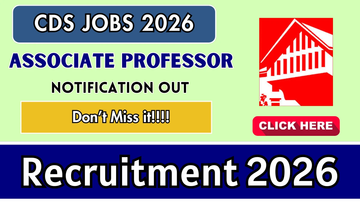 Centre for Development Studies (CDS) has released an official notification for the recruitment of 02 Associate Professor Posts. Interested and eligible candidates can apply Online through the official CDS website. The last date to submit the application form is 28-02-2026. In this article, you’ll find the CDS Associate Professor Posts recruitment details, including eligibility criteria, age limit, salary structure, selection process, application steps, and direct links to the official notification and Online application form.