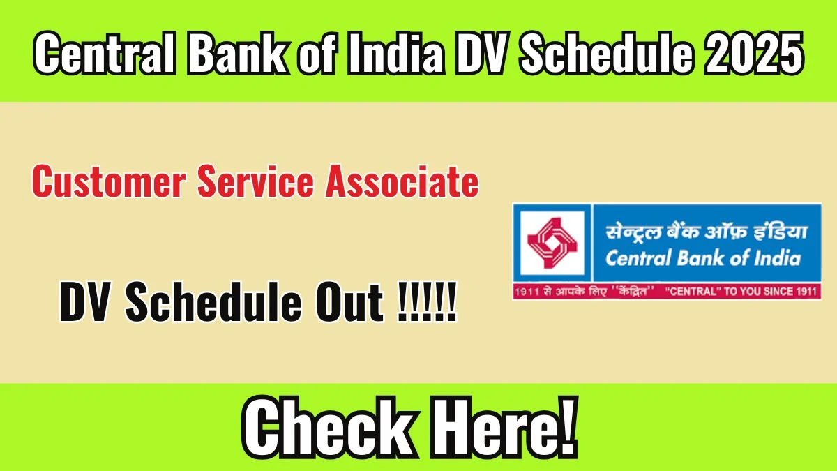 Central Bank of India Customer Service Associate DV Schedule 2025 - Key Highlights