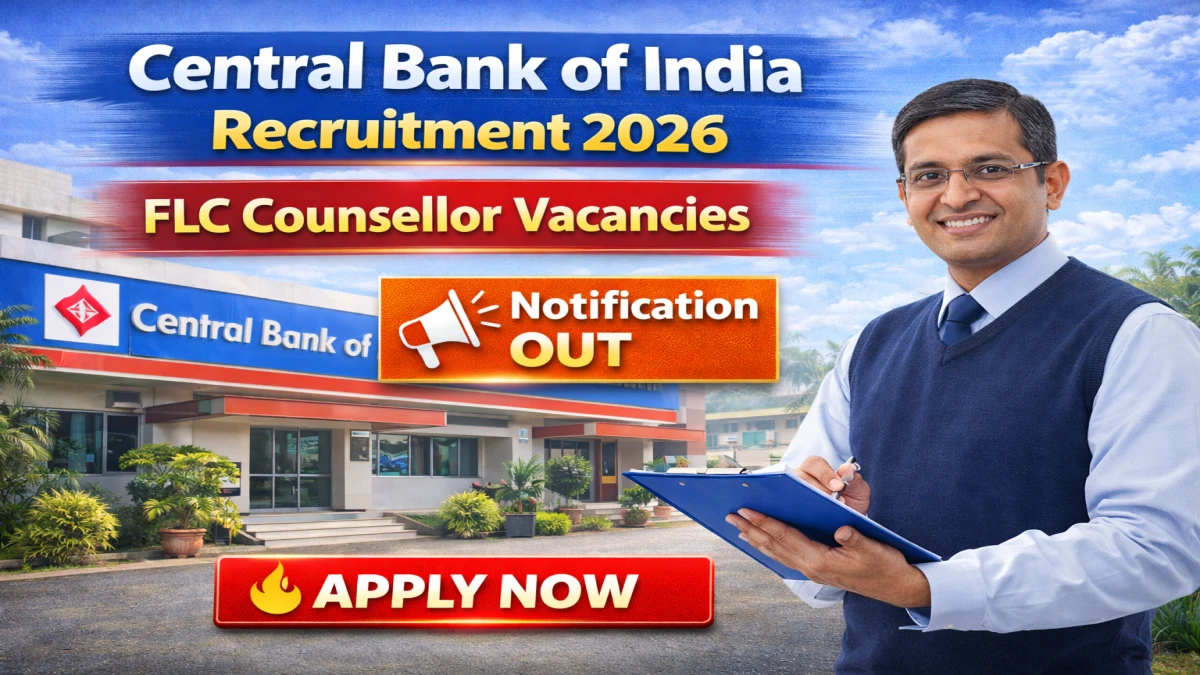Central Bank of India FLC counsellor Notification 2026 as been released on the official website centralbank.bank.in. A total of 02 vacancies have been announced through the Central Bank of India FLC counsellor Recruitment 2026.