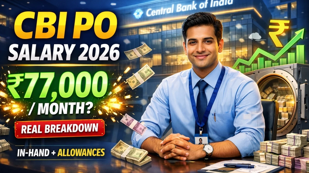 The in-hand salary is the net amount received after subtracting deductions from the gross. For CBI PO in typical metro postings, it generally falls between ₹76,000 and ₹77,000 per month (based on recent IBPS-aligned structures and current DA levels).