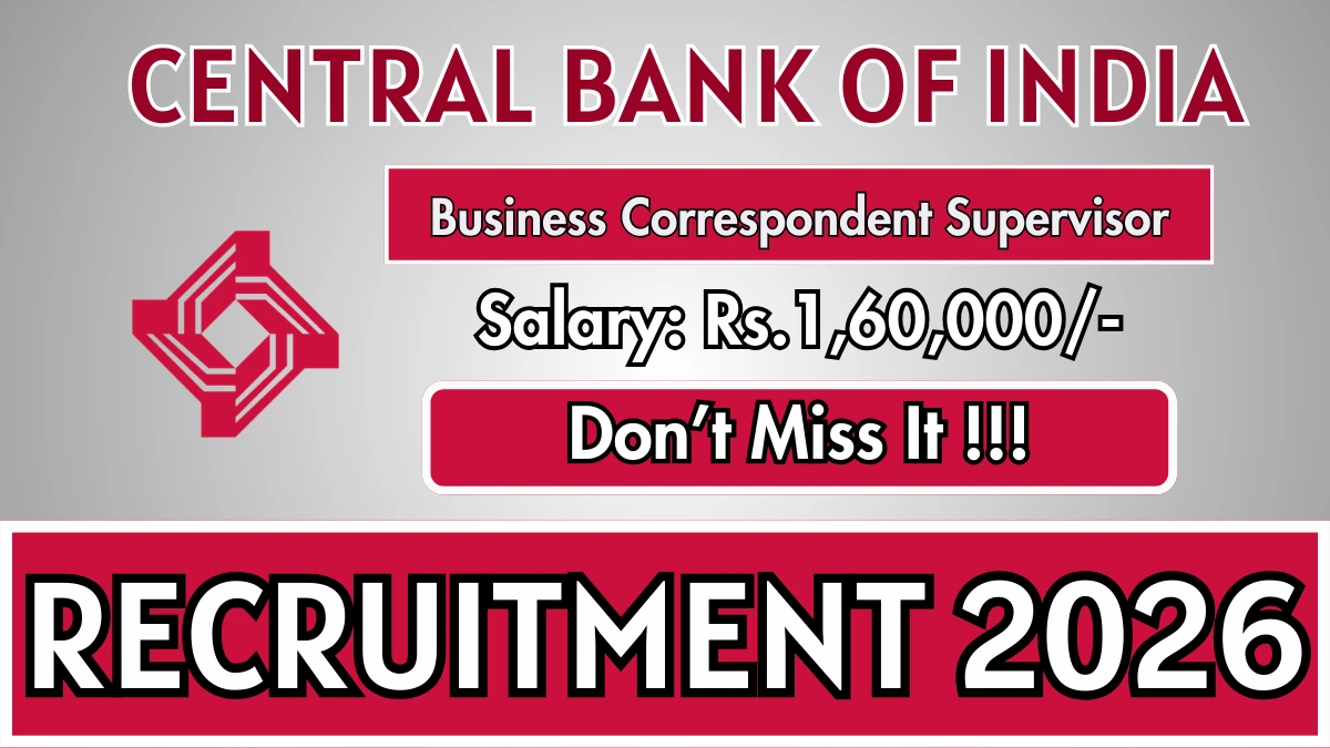 Central Bank of India Recruitment 2026: has released the official notification for 1 Central Bank of India Business Correspondent Supervisor posts, inviting applications from eligible candidates in Mumbai, Maharastra. This recruitment provides an excellent opportunity for candidates seeking stable and well-paid government jobs.