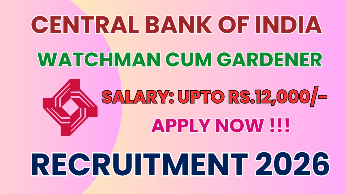 Central Bank of India has released an official notification for the recruitment of Watchman cum Gardener Posts. Interested and eligible candidates can apply Offline through the official Central Bank of India website. The last date to submit the application form is 29-01-2026. In this article, you’ll find the Central Bank of India Watchman cum Gardener Posts recruitment details, including eligibility criteria, age limit, salary structure, selection process, application steps, and direct links to the official notification and Offline application form.