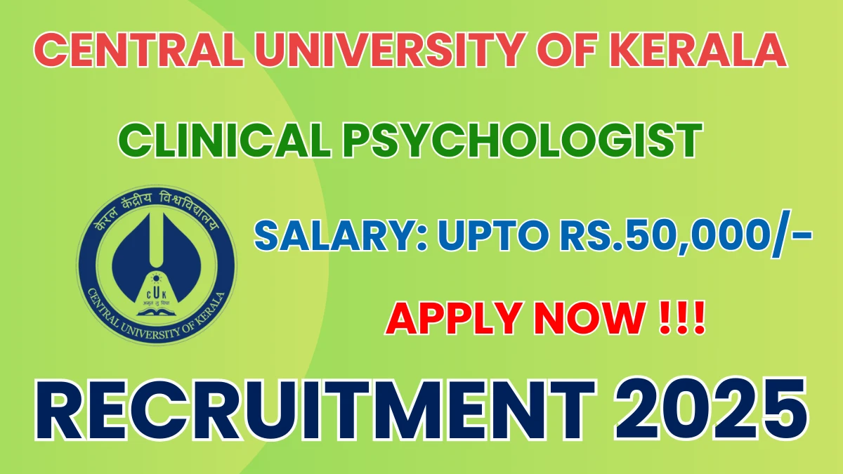 Central University of Kerala has released an official notification for the recruitment of Clinical Psychologist Posts. Interested and eligible candidates can apply Offline through the official Central University of Kerala website. The last date to submit the application form is 05-12-2025. In this article, you’ll find the Central University of Kerala Clinical Psychologist Posts recruitment details, including eligibility criteria, age limit, salary structure, selection process, application steps, and direct links to the official notification and Offline application form.