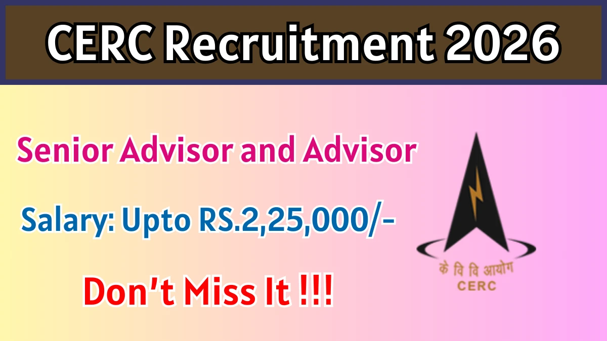 Central Electricity Regulatory Commission (CERC) has released an official notification for the recruitment of 02 Senior Advisor and Advisor Posts. Interested and eligible candidates can apply Online through the official CERC website. The last date to submit the application form is 19-02-2026. In this article, you’ll find the CERC Senior Advisor and Advisor Posts recruitment details, including eligibility criteria, age limit, salary structure, selection process, application steps, and direct links to the official notification and Online application form.