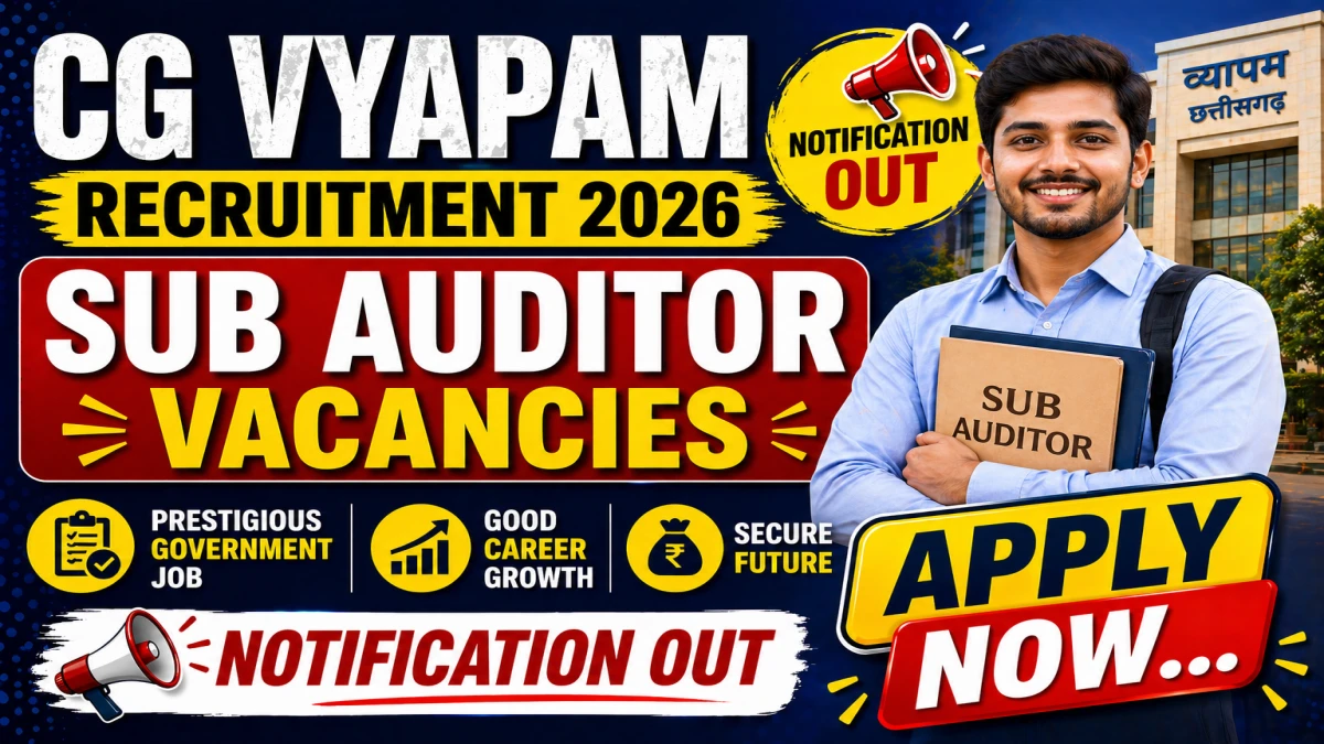 Chhattisgarh Professional Examination Board (CG Vyapam) has published the Sub Accountant (COSA26) Notification 2026 on 29 April 2026. The recruitment drive aims to fill 69 Sub Auditor (Upa Ankekshak) positions. Candidates within the prescribed age limit and holding a Bachelor’s Degree from a recognized university are eligible to apply online at https://vyapamcg.cgstate.gov.in. The application process will be active from 29 April 2026 to 22 May 2026, and candidates can easily access the notification PDF and apply link below.