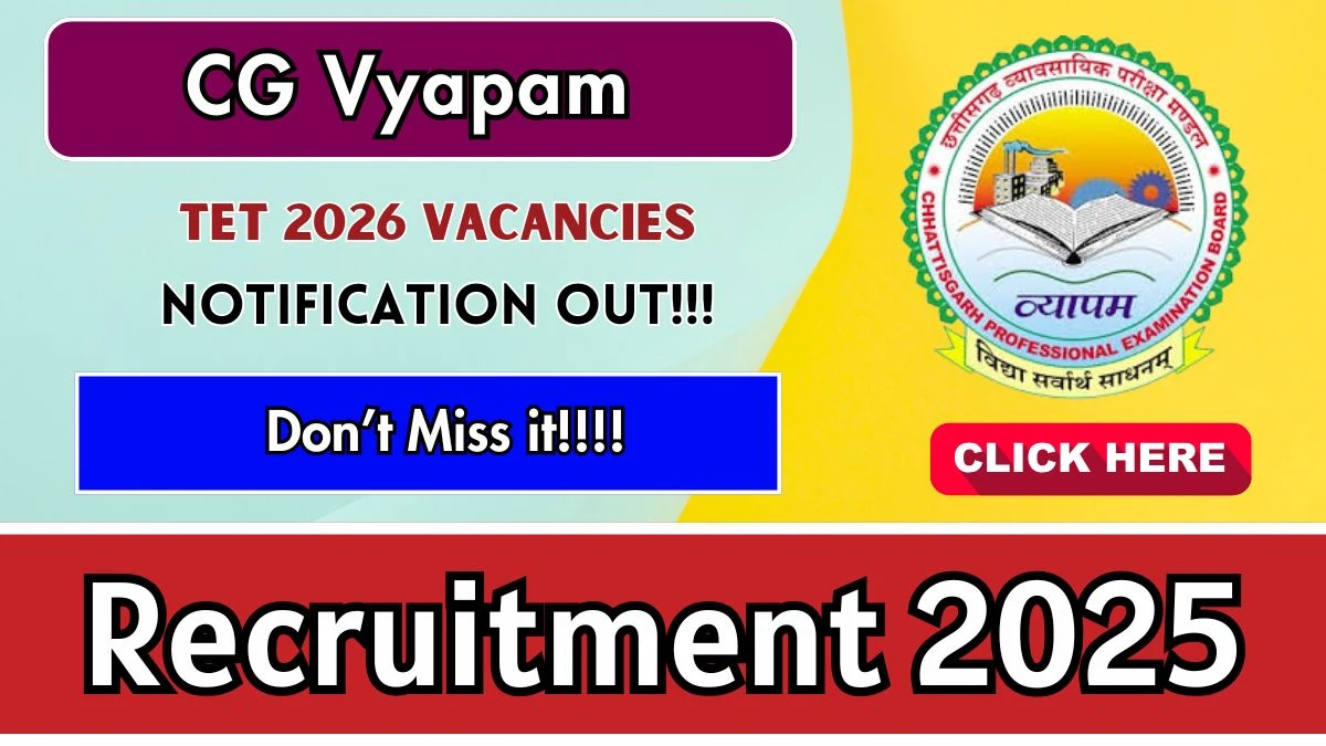 Chhattisgarh Professional Examination Board (CG Vyapam) has released an official notification for the recruitment of TET 2026 Posts. Interested and eligible candidates can apply Online through the official CG Vyapam website. The last date to submit the application form is 08-12-2025. In this article, you’ll find the CG Vyapam TET 2026 Posts recruitment details, including eligibility criteria, age limit, salary structure, selection process, application steps, and direct links to the official notification and Online application form.
