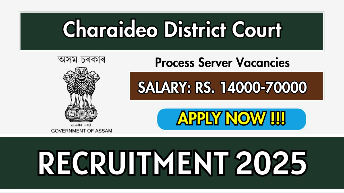 Charaideo District Court has released an official notification for the recruitment of 01 Process Server Posts. Interested and eligible candidates can apply Offline through the official Charaideo District Court website. The last date to submit the application form is 24-10-2025. In this article, you’ll find the Charaideo District Court Process Server Posts recruitment details, including eligibility criteria, age limit, salary structure, selection process, application steps, and direct links to the official notification and Offline application form.