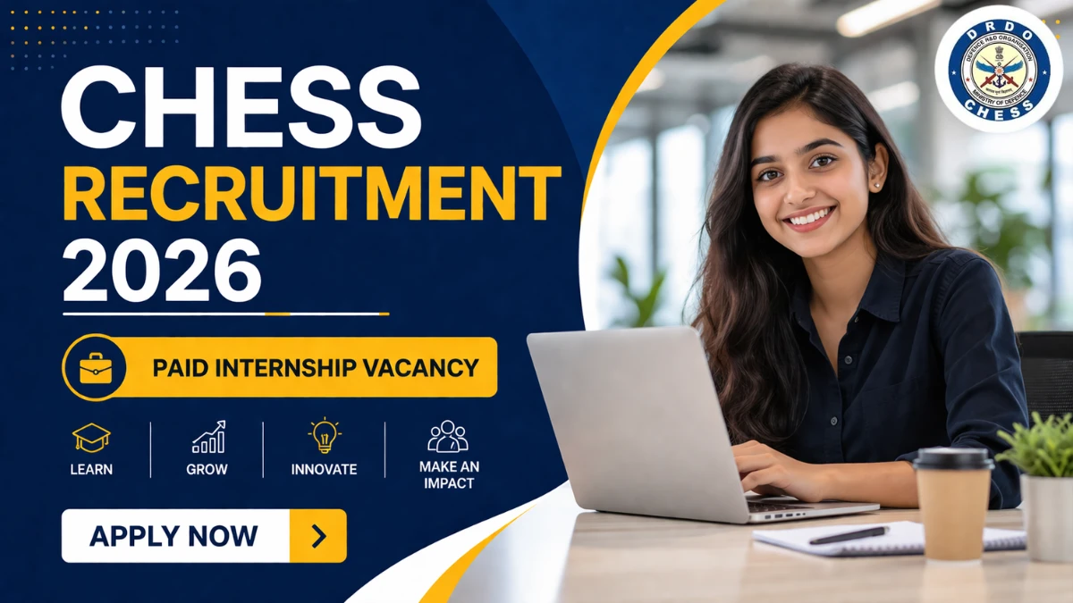 Centre for High Energy Systems and Sciences DRDO (CHESS DRDO) has published the Paid Internship Notification 2026. The recruitment drive aims to fill 20 Paid Internship positions. Candidates within the age limit of up to 27 years and pursuing final year Graduate/Post Graduate in Engineering/Science with at least 75% marks or 7.5 CGPA are eligible to apply offline through the official website, www.drdo.gov.in. The application process is ongoing, and candidates must submit their applications before the last date 11 May 2026, with access to the notification PDF and application details provided below.