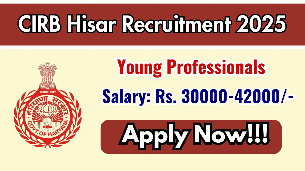 Indian Council of Agricultural Research - Central Institute for Research on Buffaloes (ICAR-CIRB) has released the Young Professional Recruitment 2025 Notification for 3 Contractual posts. The application process will start from 12.12.2025 onwards at [email protected].