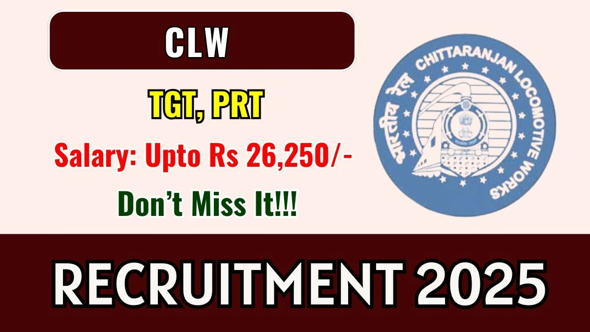 Chittaranjan Locomotive Works (CLW) Recruitment 2025 for 09 posts of TGT, PRT. Candidates with Any Graduate, B.Ed, B.Tech/B.E, M.Sc, B.El.Ed Can attend the walkin. The Walk-in interview on 10-11-2025. For detailed information please visit CLW official website, clw.indianrailways.gov.in.