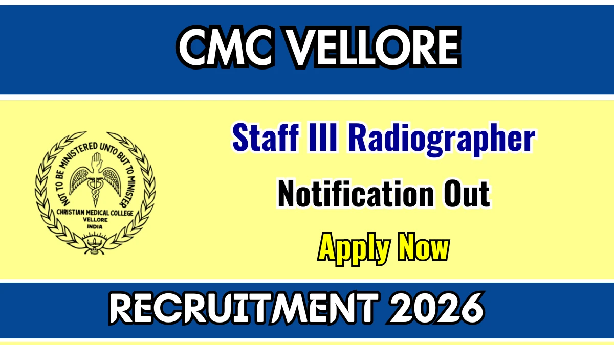 Christian Medical College Vellore (CMC Vellore) has released an official notification for the recruitment of Staff III Radiographer for Department of Radiodiagnosis Posts. Interested and eligible candidates can apply Online through the official CMC Vellore website. The last date to submit the application form is 09-03-2026.