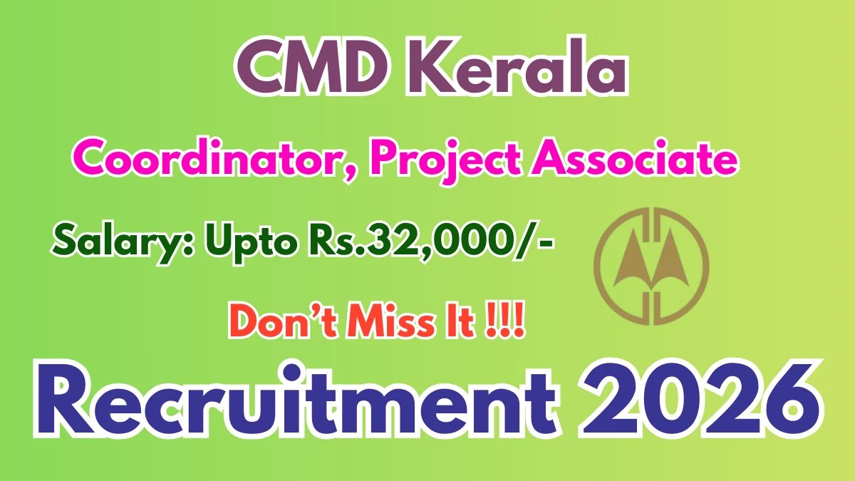 Centre for Management Development (CMD Kerala) has released an official notification for the recruitment of 02 Coordinator, Project Associate Posts. Interested and eligible candidates can apply Online through the official CMD Kerala website. The last date to submit the application form is 26-01-2026. In this article, you’ll find the CMD Kerala Coordinator, Project Associate Posts recruitment details, including eligibility criteria, age limit, salary structure, selection process, application steps, and direct links to the official notification and Online application form.