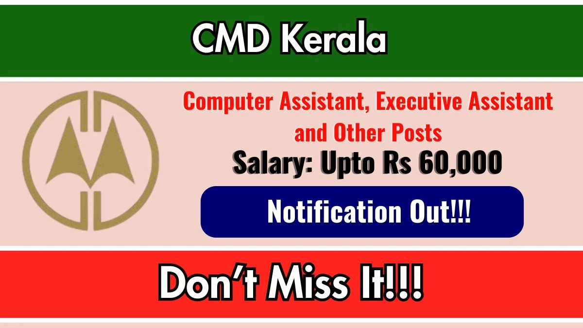 Centre for Management Development (CMD Kerala) has released an official notification for the recruitment of 36 Computer Assistant, Executive Assistant and Other Posts. Interested and eligible candidates can apply Online through the official CMD Kerala website. The last date to submit the application form is 28-01-2026. In this article, you’ll find the CMD Kerala Computer Assistant, Executive Assistant and Other Posts recruitment details, including eligibility criteria, age limit, salary structure, selection process, application steps, and direct links to the official notification and Online application form.