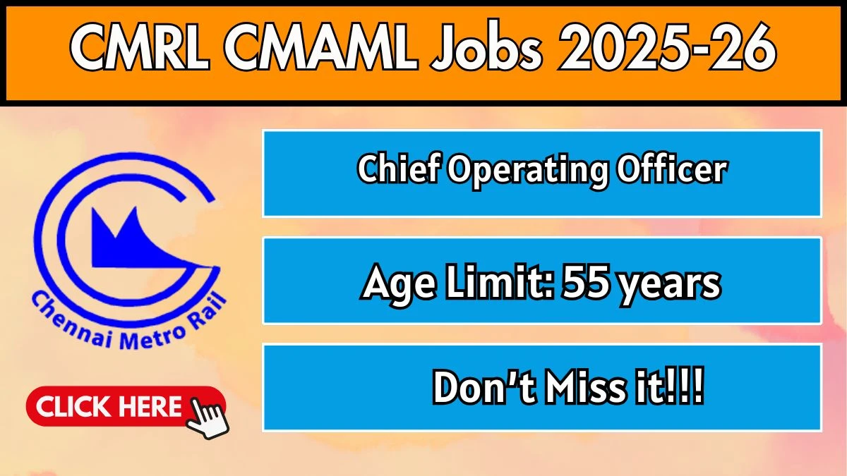 Chennai Metro Asset Management (CMRL CMAML) has released an official notification for the recruitment of 01 Chief Operating Officer Posts. Interested and eligible candidates can apply Offline through the official CMRL CMAML website. The last date to submit the application form is 23-01-2026. In this article, you’ll find the CMRL CMAML Chief Operating Officer Posts recruitment details, including eligibility criteria, age limit, salary structure, selection process, application steps, and direct links to the official notification and Offline application form.