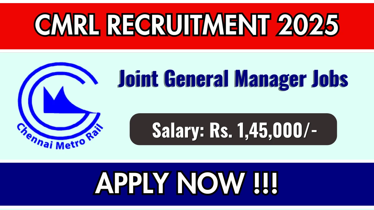 CMRL Joint General Manager Recruitment 2025 Vacancy Details