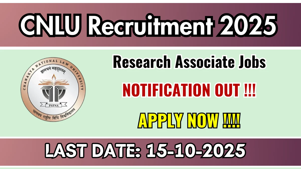 Chanakya National Law University (CNLU) has released an official notification for the recruitment of 01 Research Associate Posts. Interested and eligible candidates can apply Online through the official CNLU website. The last date to submit the application form is 15-10-2025. In this article, you’ll find the CNLU Research Associate Posts recruitment details, including eligibility criteria, age limit, salary structure, selection process, application steps, and direct links to the official notification and Online application form.