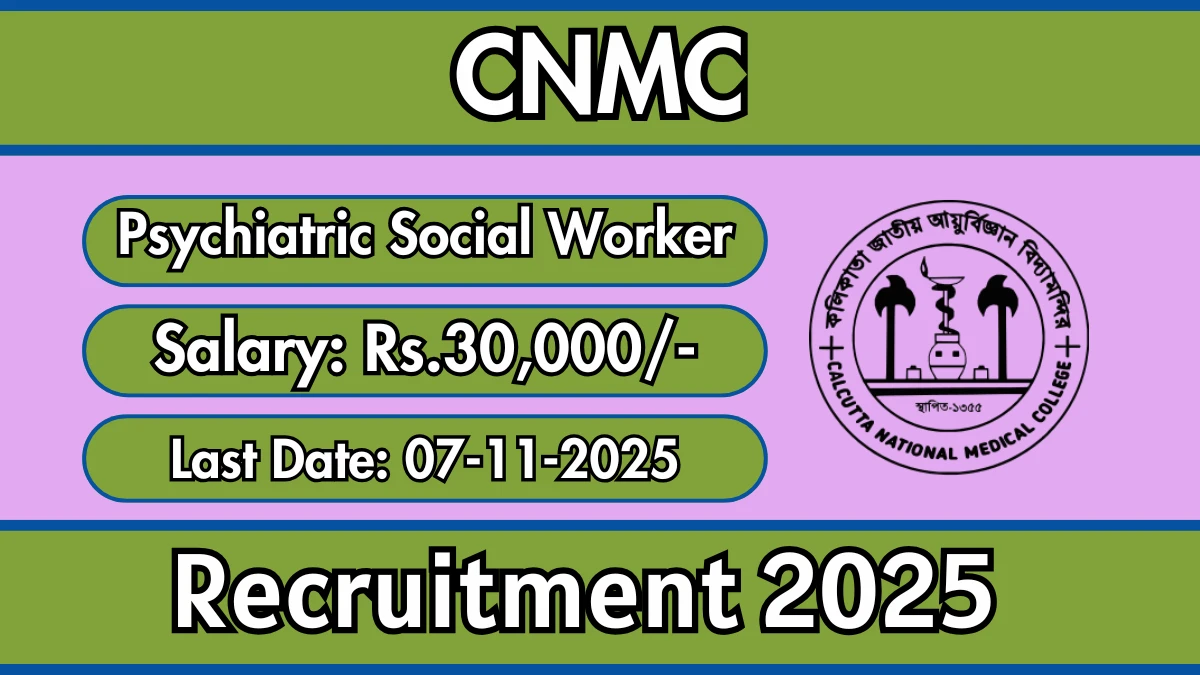 Calcutta National Medical College (CNMC) has released an official notification for the recruitment of 03 Psychiatric Social Worker Posts. Interested and eligible candidates can apply Offline through the official CNMC website. The last date to submit the application form is 07-11-2025. In this article, you’ll find the CNMC Psychiatric Social Worker Posts recruitment details, including eligibility criteria, age limit, salary structure, selection process, application steps, and direct links to the official notification and Offline application form.