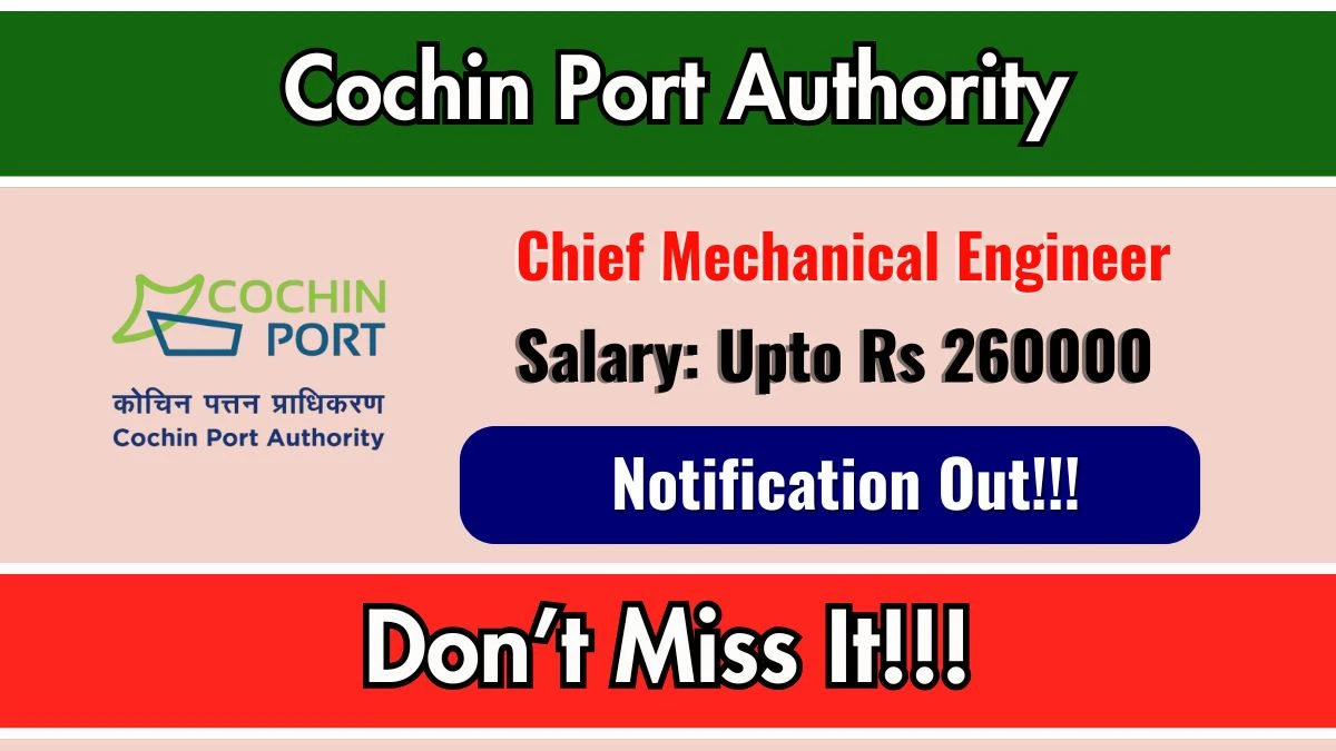 Cochin Port Authority has released an official notification for the recruitment of 01 Chief Mechanical Engineer Posts. Interested and eligible candidates can apply Online through the official Cochin Port Authority website. The last date to submit the application form is 13-03-2026. In this article, you’ll find the Cochin Port Authority Chief Mechanical Engineer Posts recruitment details, including eligibility criteria, age limit, salary structure, selection process, application steps, and direct links to the official notification and Online application form.