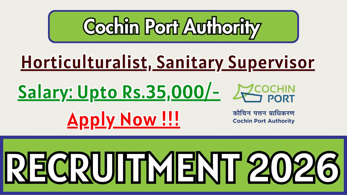 Cochin Port Authority has released an official notification for the recruitment of 02 Horticulturalist, Sanitary Supervisor Posts. Interested and eligible candidates can apply Online through the official Cochin Port Authority website. The last date to submit the application form is 23-01-2026. In this article, you’ll find the Cochin Port Authority Horticulturalist, Sanitary Supervisor Posts recruitment details, including eligibility criteria, age limit, salary structure, selection process, application steps, and direct links to the official notification and Online application form.
