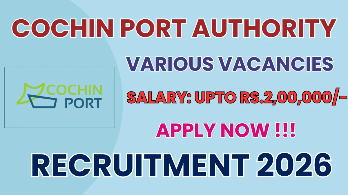 Cochin Port Authority has released an official notification for the recruitment of 07 Marine Engineer, Superintending Engineer And More Posts. Interested and eligible candidates can apply Online through the official Cochin Port Authority website. The last date to submit the application form is 23-02-2026. In this article, you’ll find the Cochin Port Authority Marine Engineer, Superintending Engineer And More Posts recruitment details, including eligibility criteria, age limit, salary structure, selection process, application steps, and direct links to the official notification and Online application form.