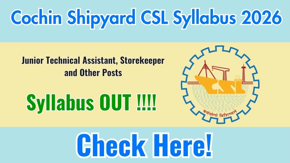 Cochin Shipyard CSL Syllabus 2026: The Cochin Shipyard Limited (CSL) has officially released the detailed syllabus for various Workmen posts Exam 2026, including Senior Ship Draftsman, Junior Technical Assistant, Lab Assistant, Store Keeper, and Assistant. Candidates preparing for the CSL recruitment can download the official notification PDF containing the syllabus, exam pattern, and marking scheme from this page. This comprehensive guide covers subject-wise topics, preparation strategy, and important books for the CSL exam.