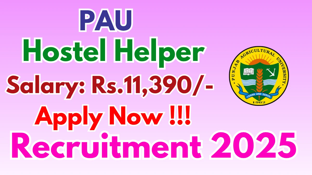 Punjab Agricultural University (PAU) has released an official notification for the recruitment of Hostel Helper Posts. Interested and eligible candidates can apply Offline through the official PAU website. The last date to submit the application form is 17-10-2025. In this article, you’ll find the PAU Hostel Helper Posts recruitment details, including eligibility criteria, age limit, salary structure, selection process, application steps, and direct links to the official notification and Offline application form.