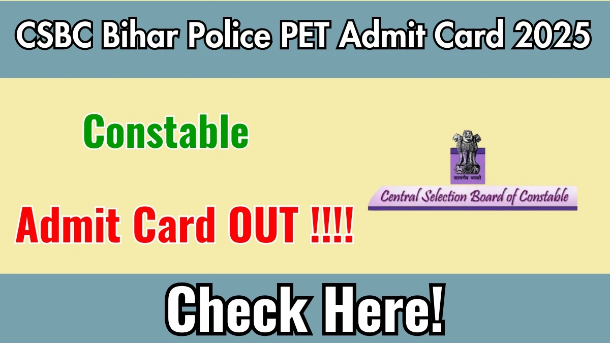 Download CSBC Bihar Police Constable PET Admit Card 2025 now! Get direct link, step-by-step process, and important exam details. Visit csbc.bihar.gov.in to download.