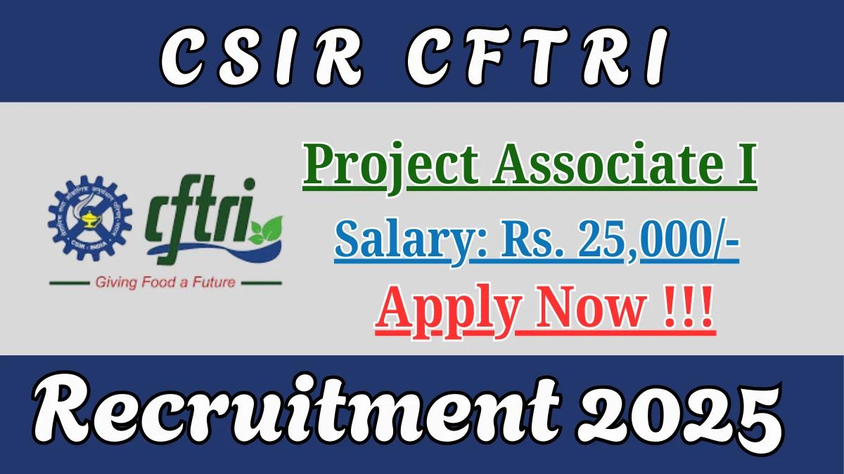 Latest Update: CSIR-CFTRI Project Associate Recruitment 2025 online application started! Apply now for 01 vacancy.