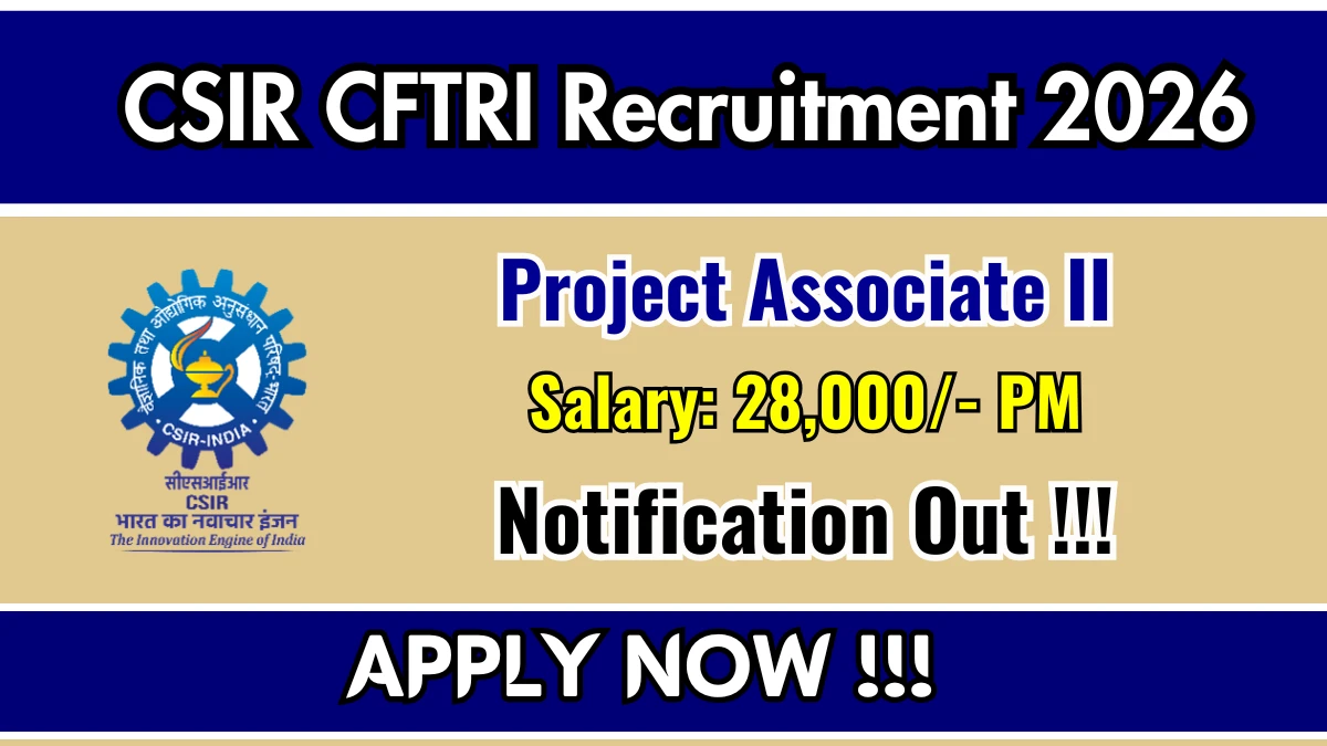 CSIR Central Food Technological Research Institute (CSIR CFTRI) Project Associate II Notification 2026 has been released recently on the official website. A total of 1 vacancy has been announced through the CSIR CFTRI Project Associate II Recruitment 2026.