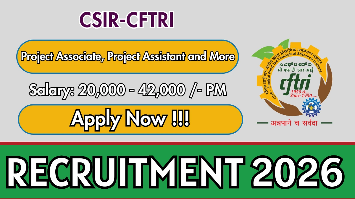 CSIR-Central Food Technological Research Institute (CFTRI) Project Associate Notification 2026 has been released on the official website https://cftri.res.in . A total of 9 vacancies have been announced through the CFTRI Project Associate Recruitment 2026.