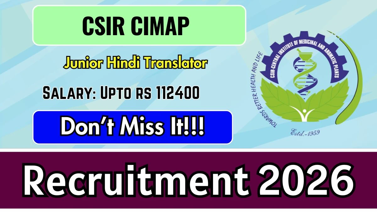 CIMAP Junior Hindi Translator Recruitment 2026 notification has been officially released by CSIR-Central Institute of Medicinal & Aromatic Plants, Lucknow for 1 permanent JHT post, offering a major opportunity for postgraduates in Hindi/English with translation skills in a central government setup. Interested Indian nationals can apply online from 30 January 2026 to 20 February 2026 (11:59 PM) and must also submit the hard copy by 06 March 2026. CSIR-CIMAP functions under the Council of Scientific & Industrial Research (CSIR), one of India’s premier scientific research organizations.