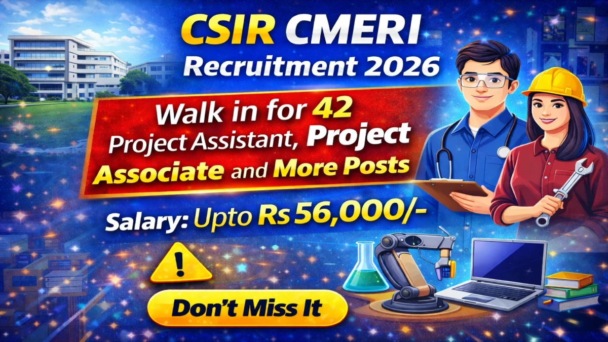 CSIR – Central Mechanical Engineering Research Institute (CSIR CMERI) Project Staff Notification 2026 has been released on 2026 on the official website https://www.cmeri.res.in. A total of 42 vacancies have been announced through the CSIR CMERI Project Staff Recruitment 2026.