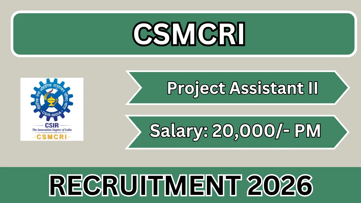 Central Salt & Marine Chemicals Research Institute (CSIR CSMCRI) Project Assistant-II Notification 2026 has been released on the official website csmcri.res.in. A total of 1 vacancy has been announced through the CSIR CSMCRI Project Assistant-II Recruitment 2026.
