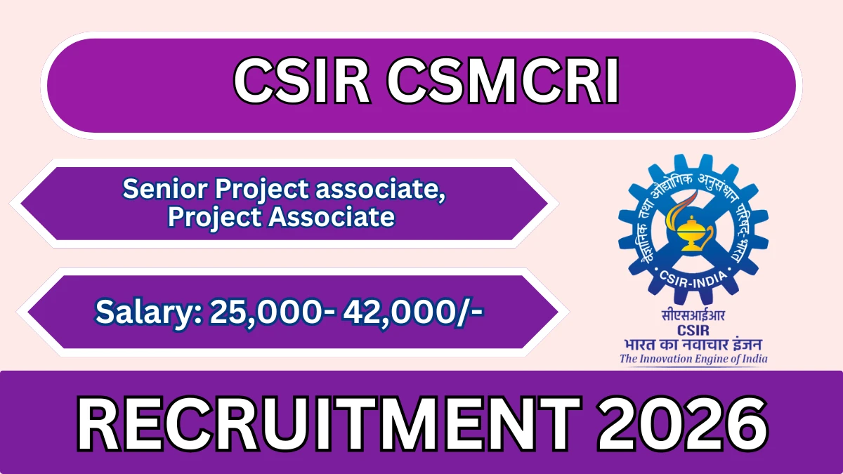 The latest Central Salt & Marine Chemicals Research Institute (CSIR CSMCRI) Recruitment 2026 has been announced for Project Associate-I / Senior Project Associate / Project Assistant-II / Project Associate-II posts! Published in 2026 at the official CSIR CSMCRI platform, this new recruitment drive offers 37 openings for eligible candidates. Applicants within the maximum age limit of 35 years and possessing qualifications such as M.Sc., B.E./B.Tech, or B.Sc. in relevant disciplines can apply via email from the notification release date to 05 May 2026. Find all details about the CSIR CSMCRI Project Associate & Assistant vacancy 2026, including eligibility, application process, and notification PDF here.