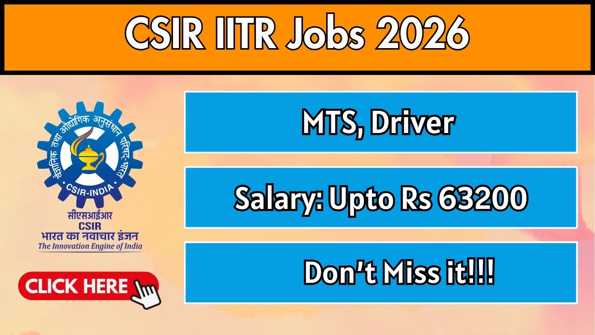 CSIR Indian Institute of Toxicology Research (CSIR IITR) has released an official notification for the recruitment of 06 MTS, Driver Posts. Interested and eligible candidates can apply Online through the official CSIR IITR website. The last date to submit the application form is 19-02-2026. In this article, you’ll find the CSIR IITR MTS, Driver Posts recruitment details, including eligibility criteria, age limit, salary structure, selection process, application steps, and direct links to the official notification and Online application form.
