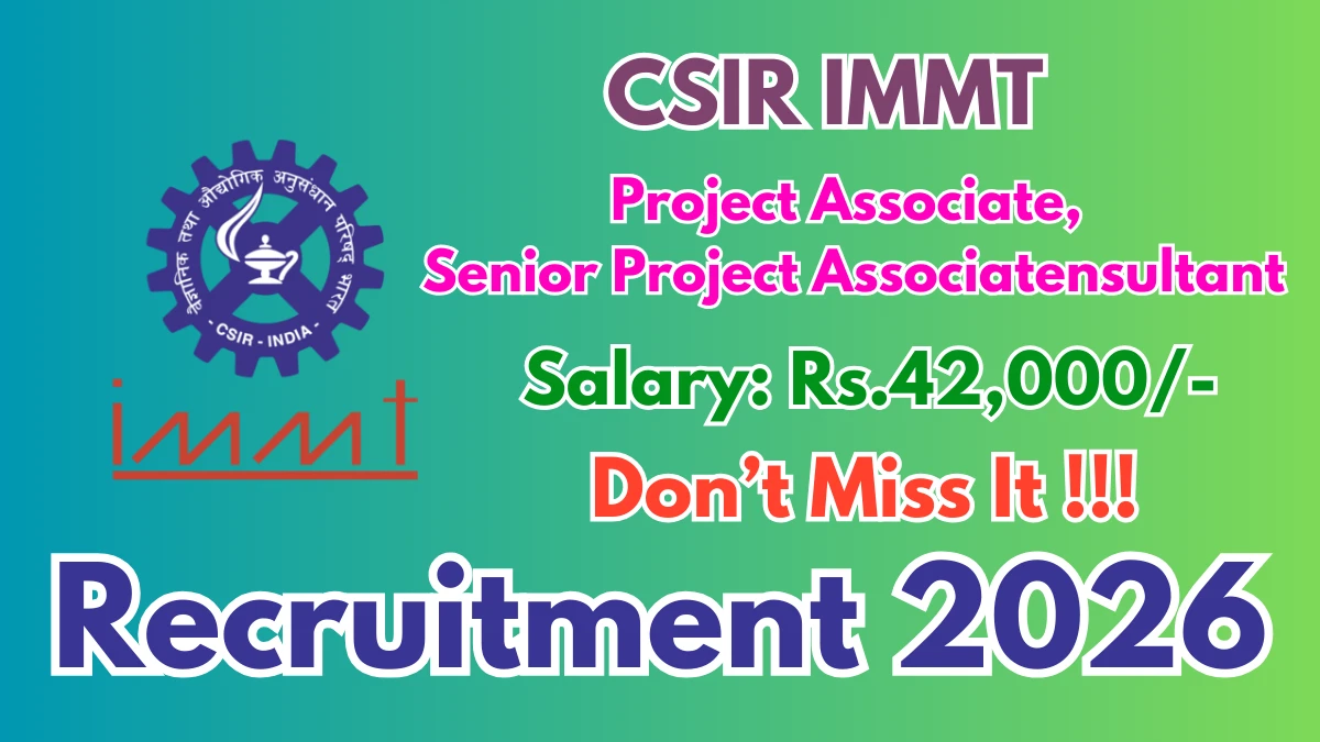 CSIR Institute of Minerals and Materials Technology (CSIR-IMMT) Recruitment 2026: CSIR Institute of Minerals and Materials Technology has released the official notification for 13 Project Associate - I / Project Associate - II / Senior Project Associate posts, inviting applications from eligible candidates in Odisha. This recruitment provides an excellent opportunity for candidates seeking stable and well-paid research jobs.