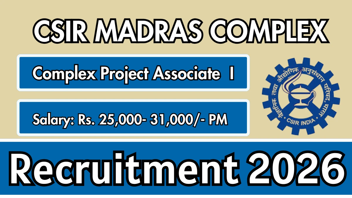 CSIR Madras Complex Recruitment 2026 for 02 posts of Project Associate l. Candidates with B.Tech/B.E, M.Sc Can attend the walkin. The Walk-in on 11-03-2026. For detailed information please visit CSIR Madras Complex official website, csircmc.res.in.