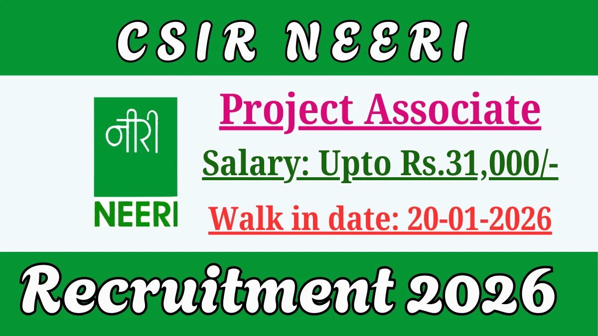 National Environmental Engineering Research Institute (CSIR NEERI) Recruitment 2026 for 01 posts of Project Associate. Candidates with B.Tech/B.E Can attend the walkin. The Walk-in on 20-01-2026. For detailed information please visit CSIR NEERI official website, neeri.res.in.