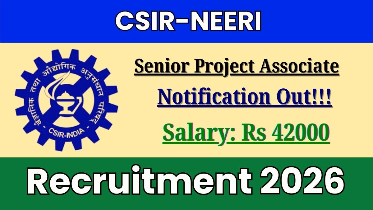 National Environmental Engineering Research Institute (CSIR NEERI) Recruitment 2026 for 01 posts of Senior Project Associate. Candidates with B.Tech/B.E, M.Sc, M.E/M.Tech Can attend the walkin. The Walk-in interview ends on 20-01-2026. For detailed information please visit CSIR NEERI official website, neeri.res.in.
