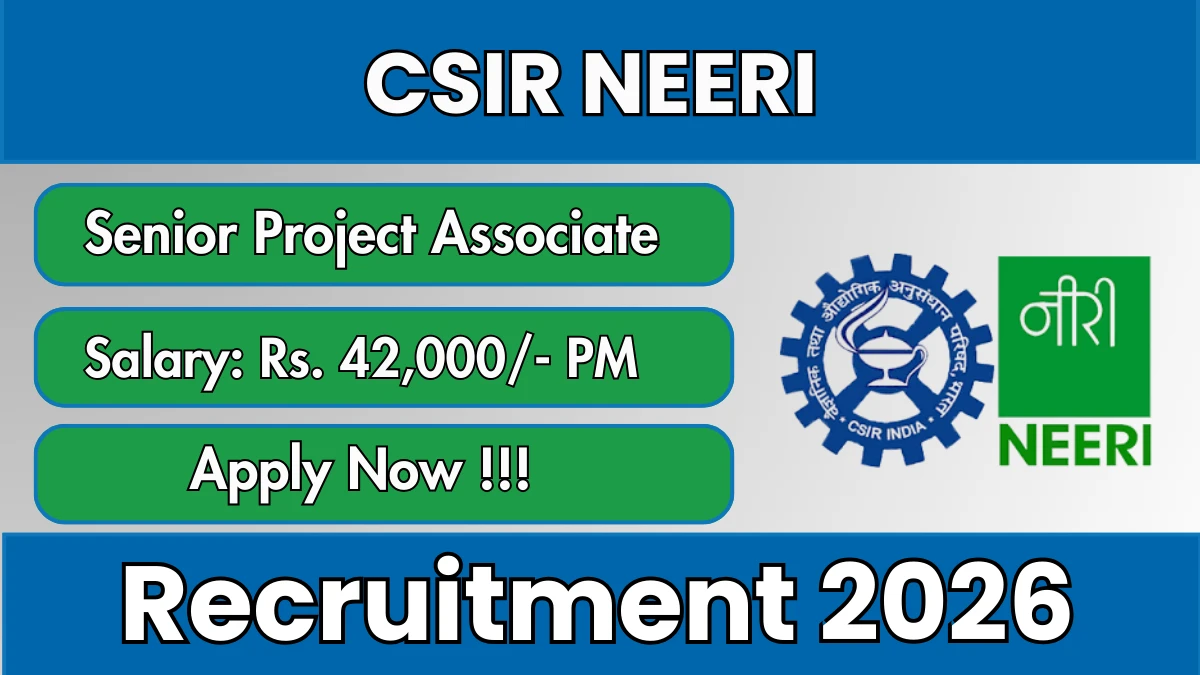 National Environmental Engineering Research Institute (CSIR NEERI) Recruitment 2026 for 01 posts of Senior Project Associate. Candidates with B.Tech/B.E Can attend the walkin. The Walk-in on 02-03-2026. For detailed information please visit CSIR NEERI official website, neeri.res.in.