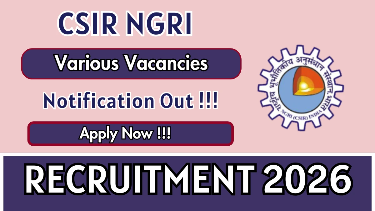 National Geophysical Research Institute (CSIR NGRI) has released an official notification for the recruitment of 14 Project Assistant, Project Associate And More Posts. Interested and eligible candidates can apply Online through the official CSIR NGRI website. The last date to submit the application form is 18-01-2026. In this article, you’ll find the CSIR NGRI Project Assistant, Project Associate And More Posts recruitment details, including eligibility criteria, age limit, salary structure, selection process, application steps, and direct links to the official notification and Online application form.