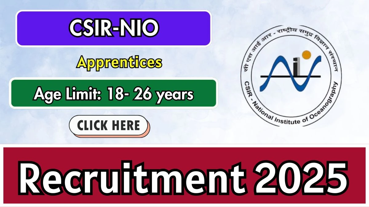 CSIR National Institute of Oceanography (CSIR NIO) Recruitment 2026 for 14 posts of Apprentices. Candidates with Any Graduate, B.Sc, Diploma Can attend the walkin. The Walk-in interview on 08-01-2026. For detailed information please visit CSIR NIO official website, nio.res.in.