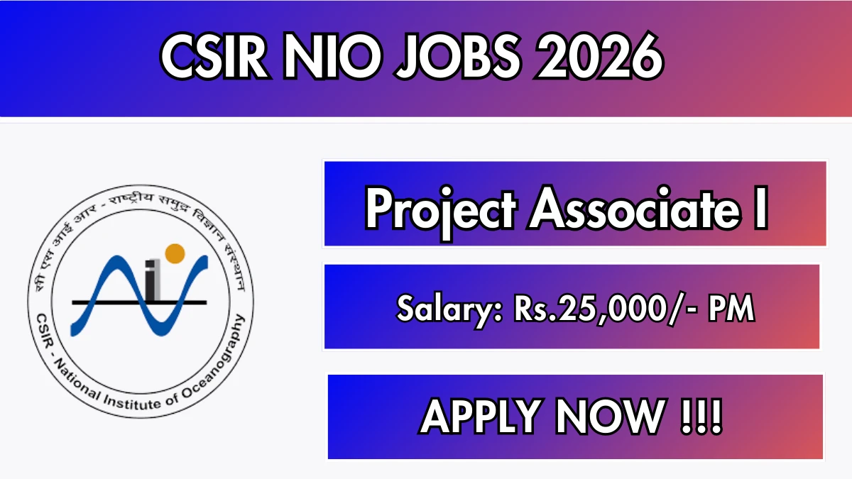 CSIR National Institute of Oceanography (CSIR NIO) has released an official notification for the recruitment of 01 Project Associate I Posts. Interested and eligible candidates can apply Offline through the official CSIR NIO website. The last date to submit the application form is 15-02-2026. In this article, you’ll find the CSIR NIO Project Associate I Posts recruitment details, including eligibility criteria, age limit, salary structure, selection process, application steps, and direct links to the official notification and Offline application form.