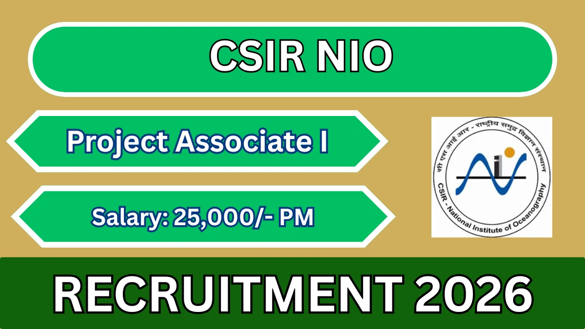 CSIR National Institute of Oceanography (CSIR NIO) Project Associate - I Notification 2026 has been released on the official website of CSIR National Institute of Oceanography. A total of 1 vacancy has been announced through the CSIR NIO Project Associate - I Recruitment 2026.